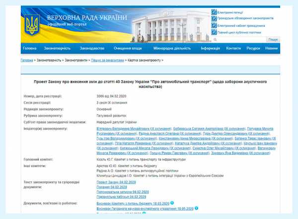 Текст законопроекту: Проект Закону про внесення змін до статті 40 Закону України “Про автомобільний транспорт” (щодо заборони акустичного насильства)
